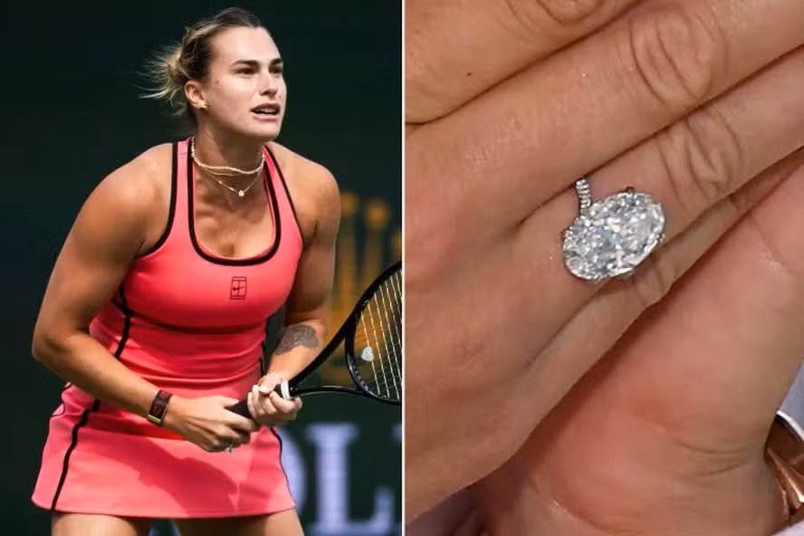 Aryna Sabalenka tem jogado consistentemente usando seu anel de noivado um diamante grande, de destaque, presente de seu parceiro Georgios Frangulis.